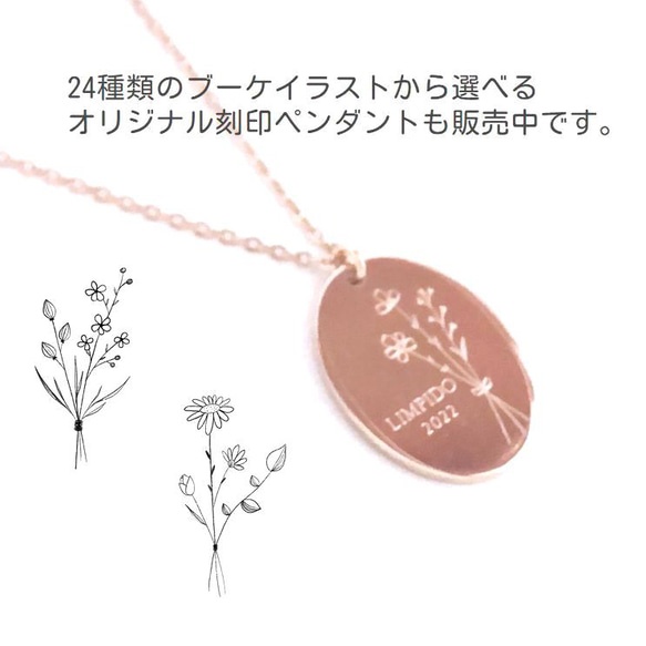 ボタニカルイラストとお好きな文字の組み合わせが楽しめるオリジナル刻印ペンダントです。花と野草は38種類から、プレートは3つのカラーからお選び頂けます。縦長のオーバル型プレートは上品で柔らかな印象に見せてくれます